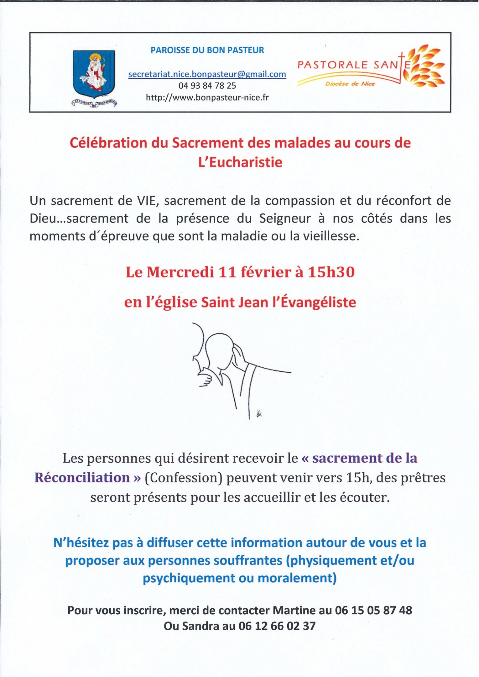 Célébration du Sacrement des Malades au cours de l’Eucharistie – Mercredi 11 février 2026 – 15h30 – Eglise Saint Jean l’Evangéliste