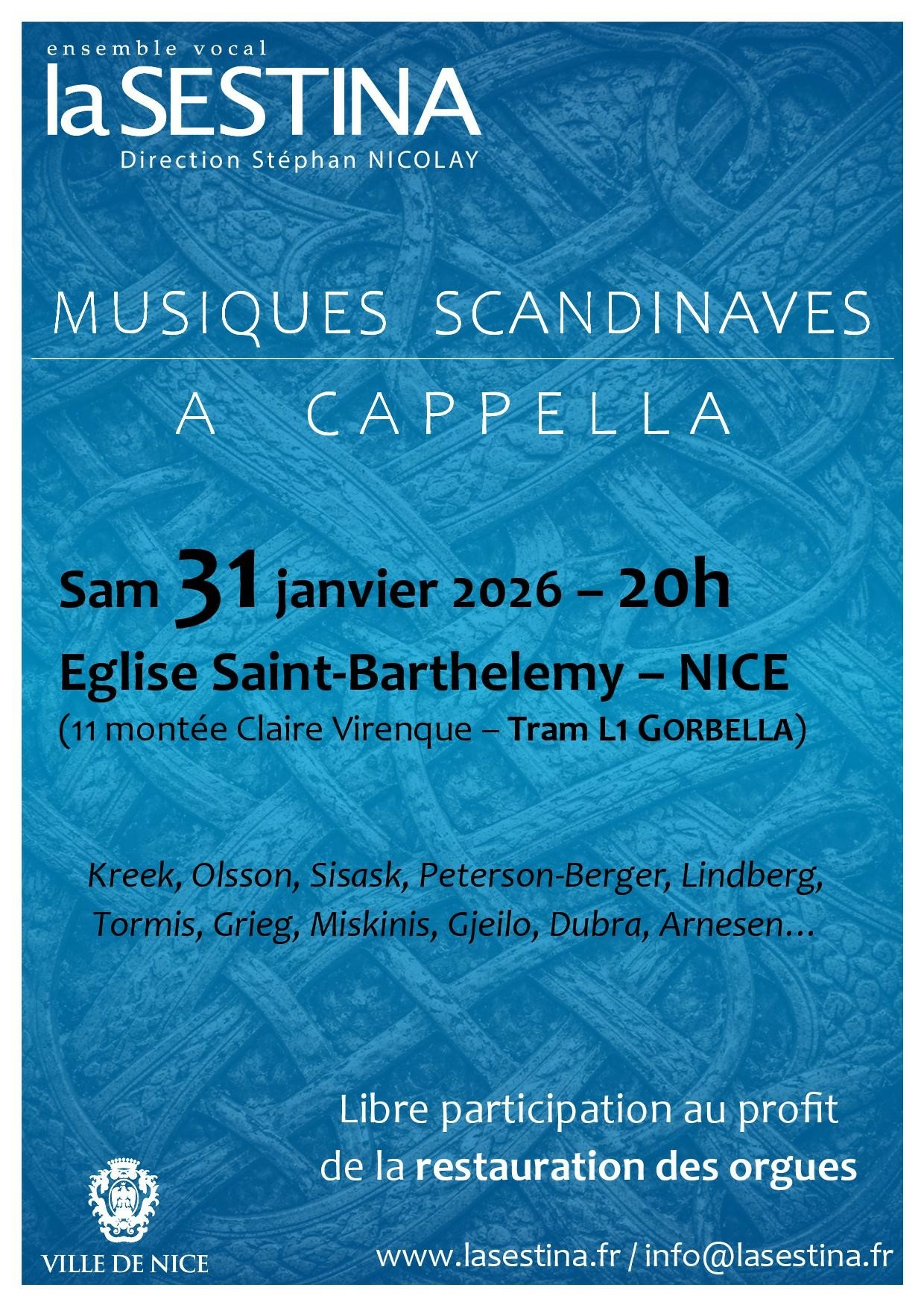 Concert de l’Ensemble Vocal La Sestina – « Musiques Scandinaves A Cappella – Samedi 31 Janvier 2026 – 20h – Eglise Saint-Barthélémy – Nice.