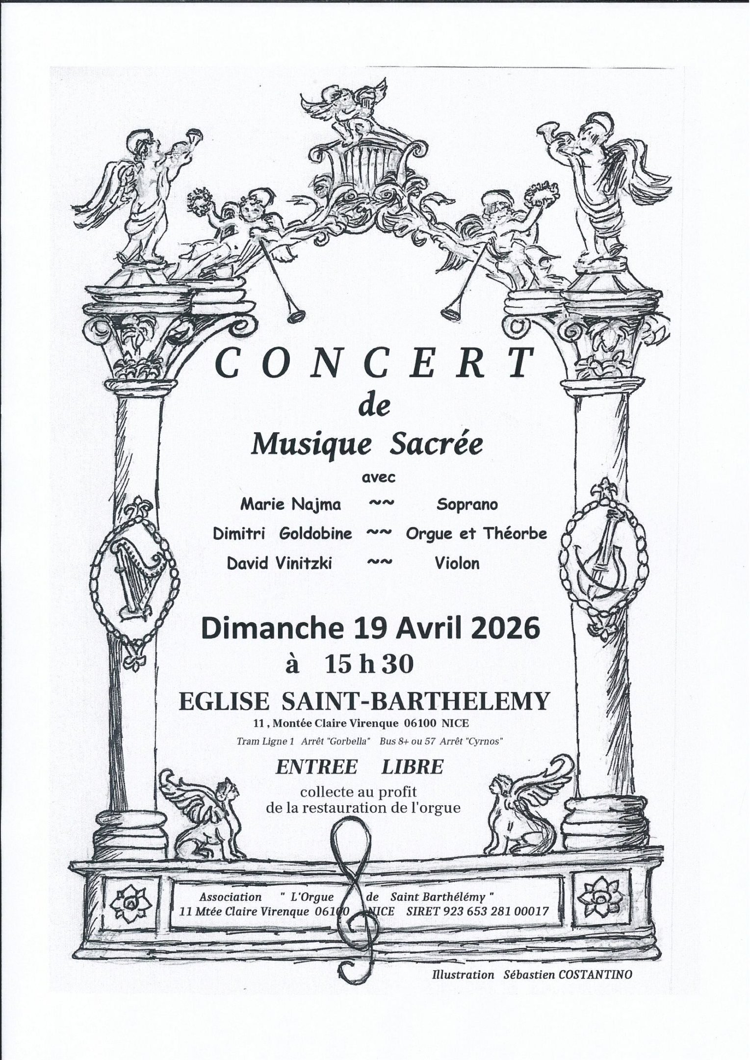 Concert de Musique Sacrée – Dimanche 19 avril 2026- 15h30 – Eglise St Barthélémy