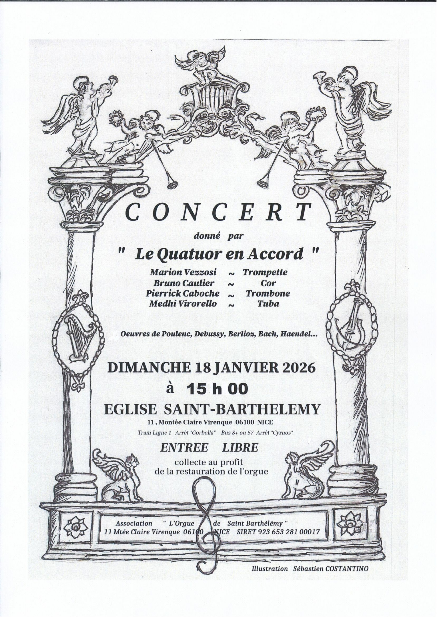 Concert du Dimanche 18 janvier 2026 – 15h00 – Eglise Saint Barthélémy – Collecte au profit de la Restauration du Grand Orgue.