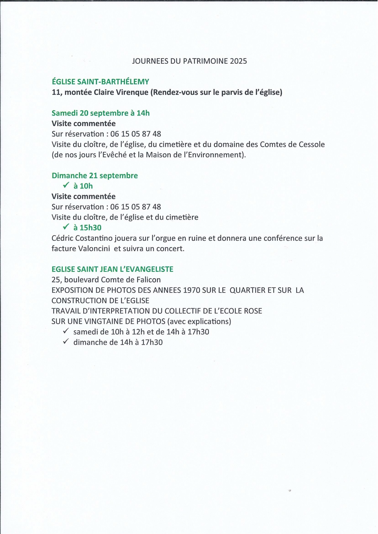 Concert et Conférence – Dimanche 21 septembre 2025 – 15h30 – Eglise Saint Barthélémy et Programme des Journées Européennes du Patrimoine 2025 dans notre quartier