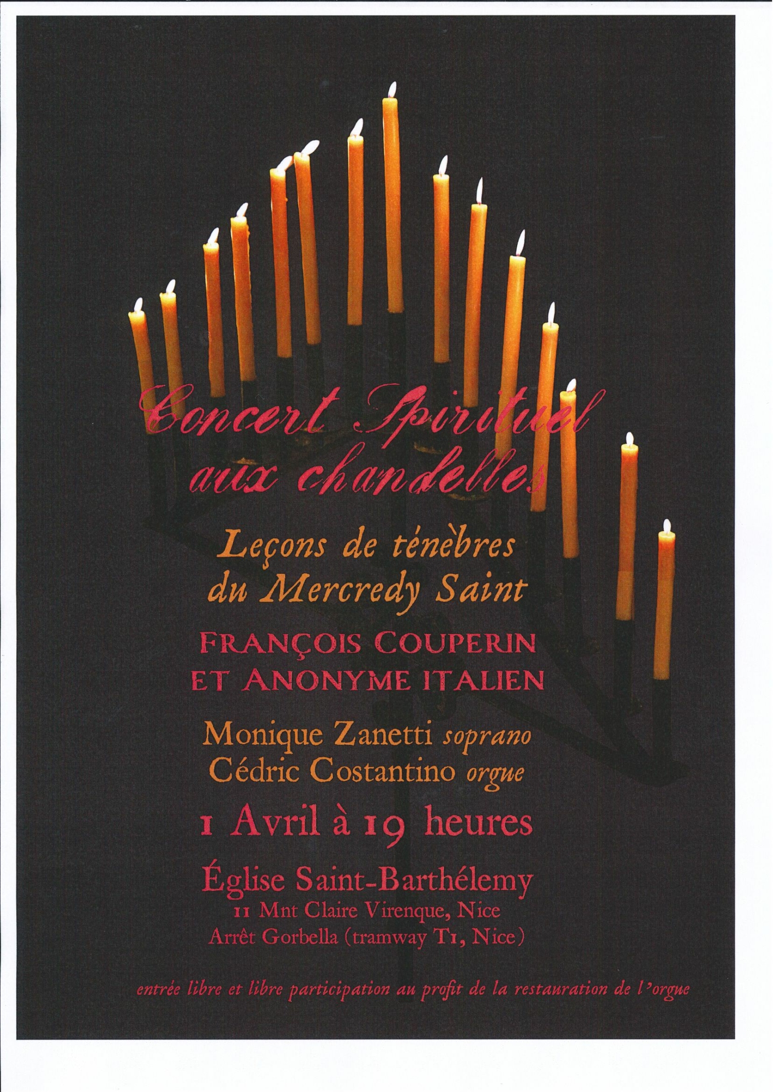 Concert Spirituel aux Chandelles – « Leçons de ténèbres du Mercredy Saint »- Mercredi 1er avril 2026 – 19h – Eglise St Barthélémy.