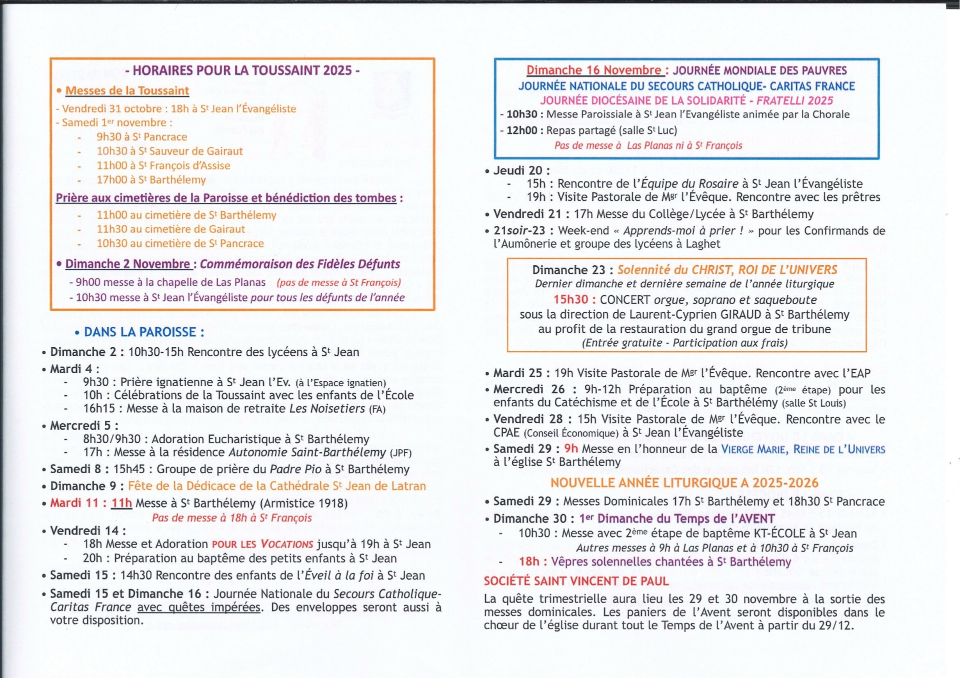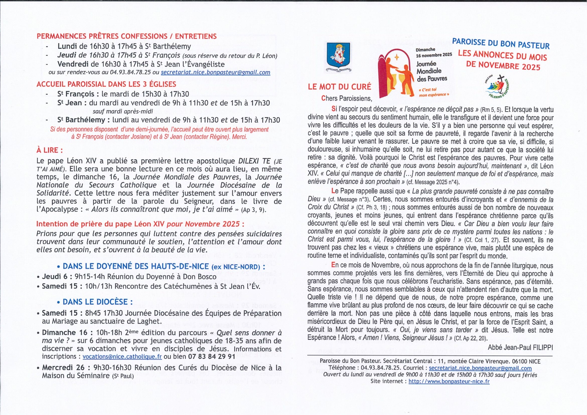 Le Mot du Curé et les Annonces du mois de novembre 2025