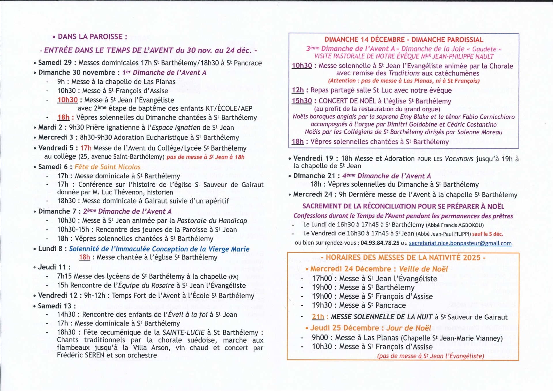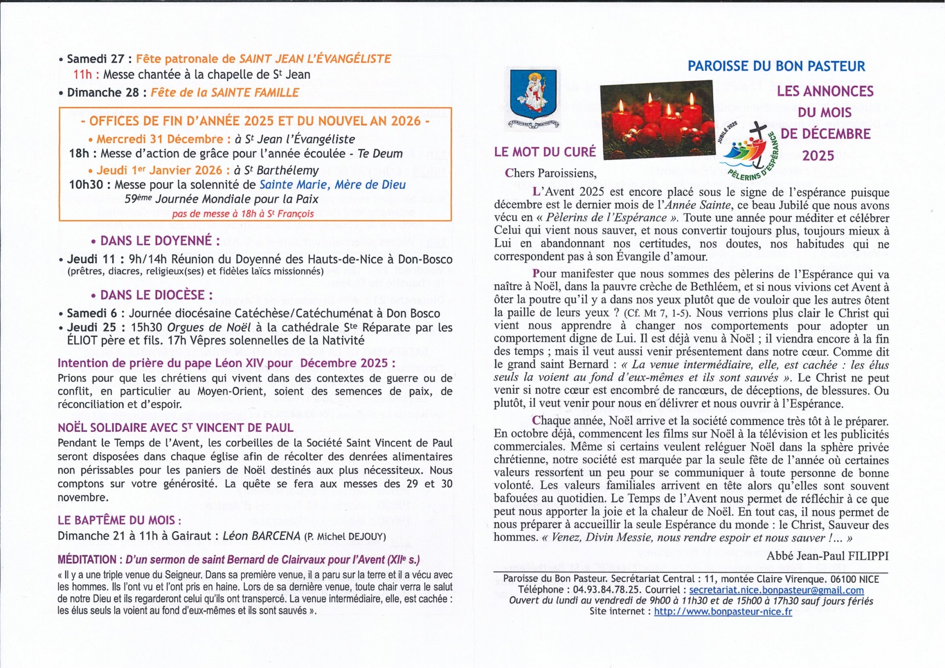 Le Mot du Curé et les Annonces pour le mois de décembre 2025