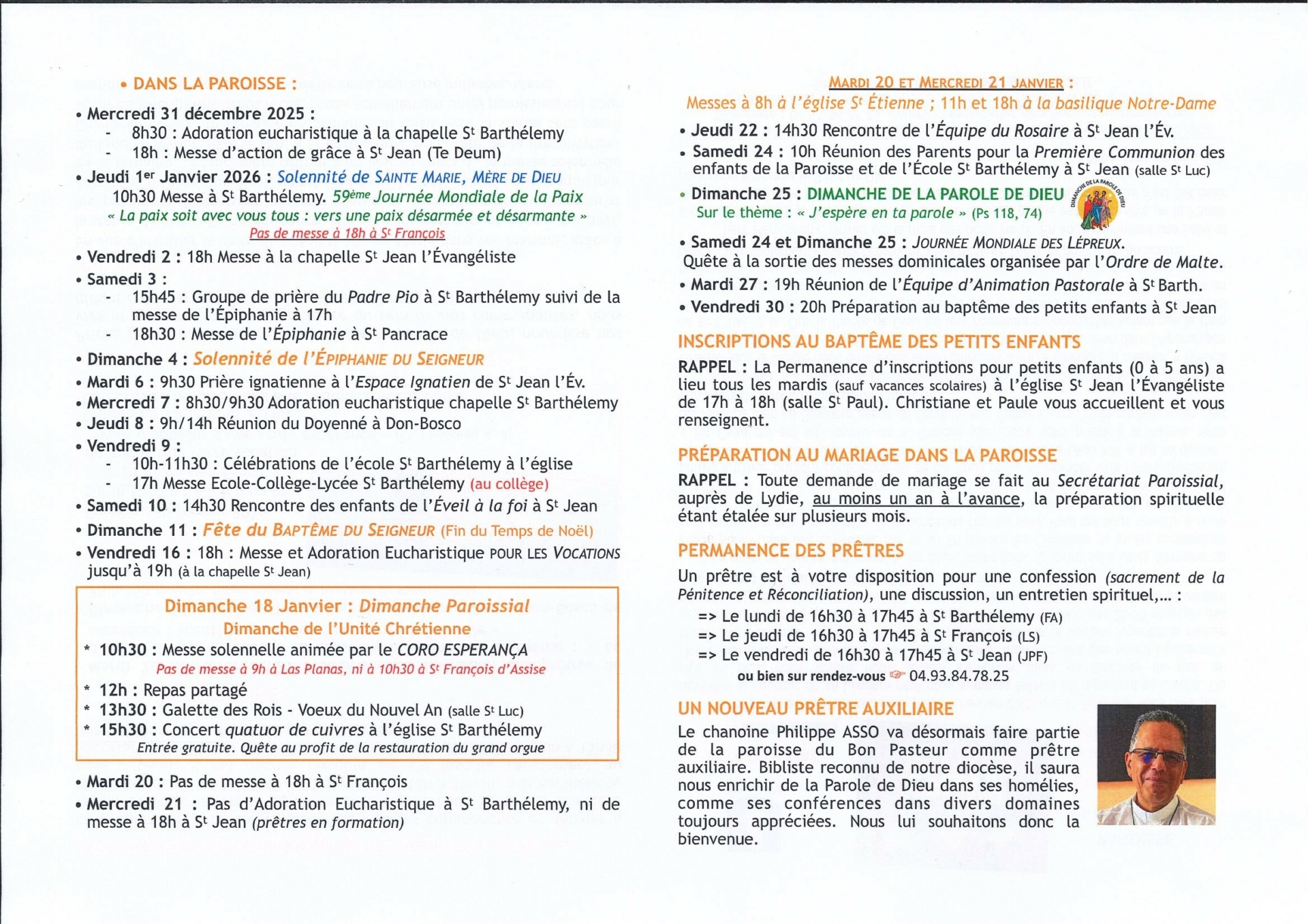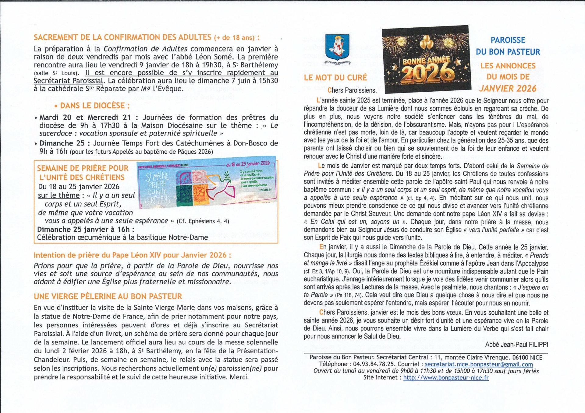 Le Mot du Curé et les Annonces pour le mois de janvier 2026